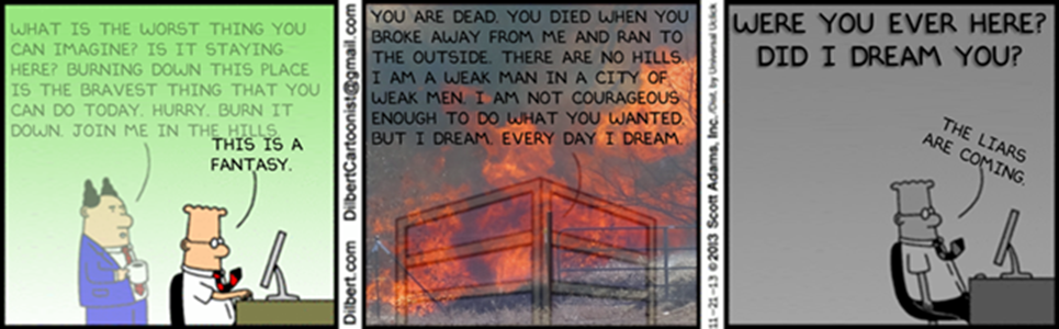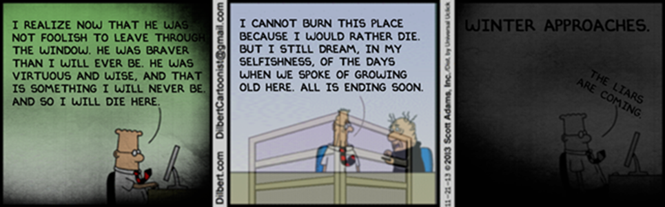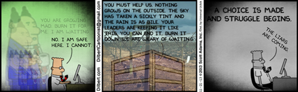 I also decided to have a problem with Scott Adams, whose politics had started to profoundly bother me. This whole idea of an IQ-based meritocracy where everybody in the room besides you is an idiot. So I designed and wrote this, and it didn't make a ton of sense but that's fine because ultimately I just wanted to do an insane thing. Just to see what happened. The Dilbert Project: